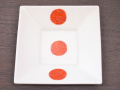 | 製品名 | 九谷焼 3.5号角皿 赤丸針彫 |